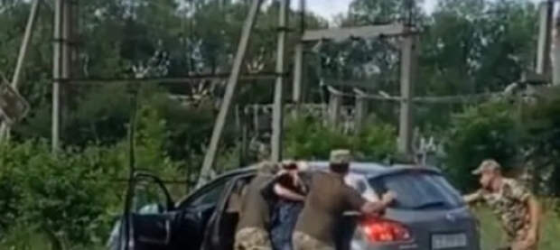 Принудительные задержания, избиения и произвол сотрудников ТЦК на Украине набирает обороты. Военкомы открыли охоту на водителей автомобилей. Двумя микроавтобусами они блокируют движущийся гражданский автомобиль, разбивают окна, забрызгивают газом и силой вытаскивают водителей.